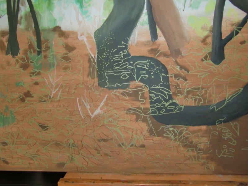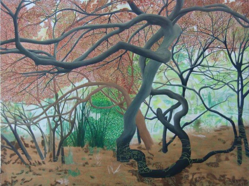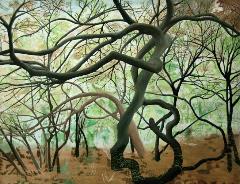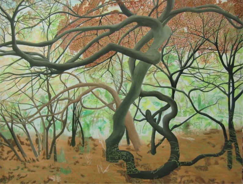 und die feinen Äste sind mit der Ziehfeder in Tusche gezeichnet