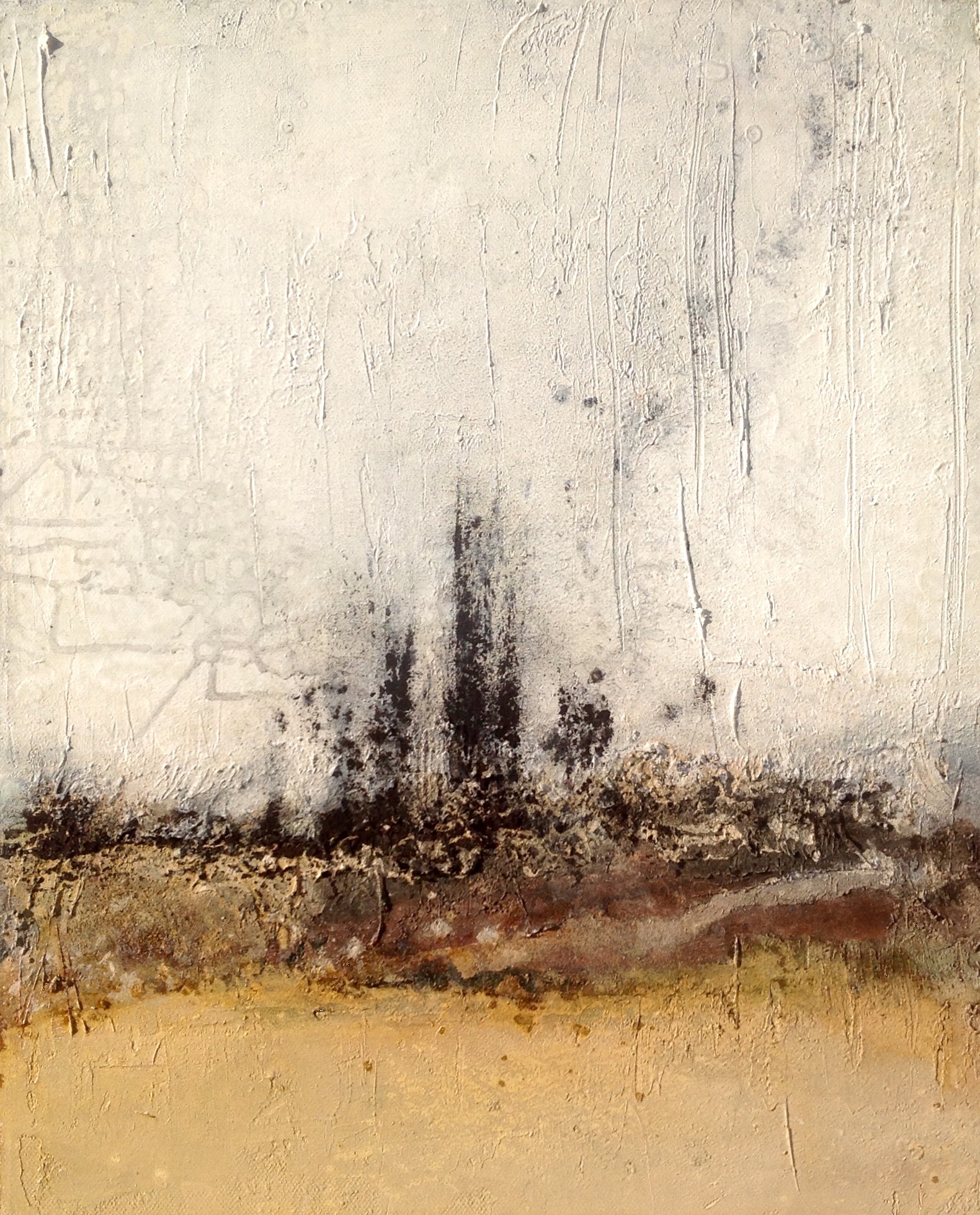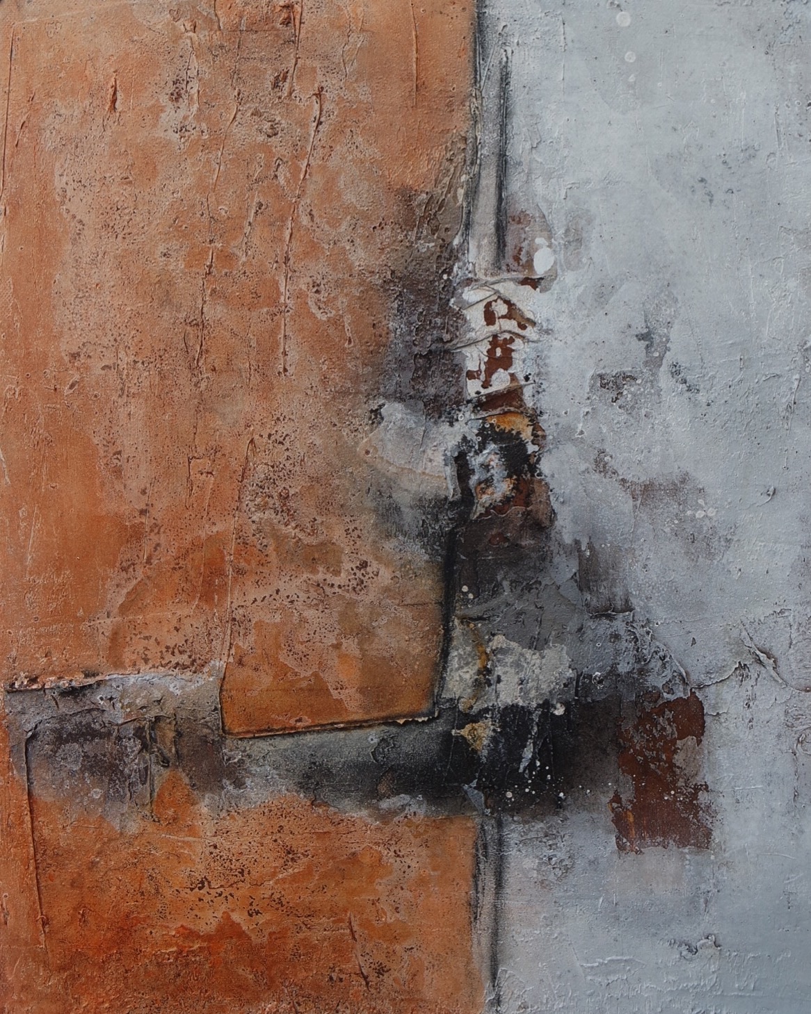 ohne Titel Marmormehl, Rost, Beize, Pigmente, Wachs, Acryl 40 x 50