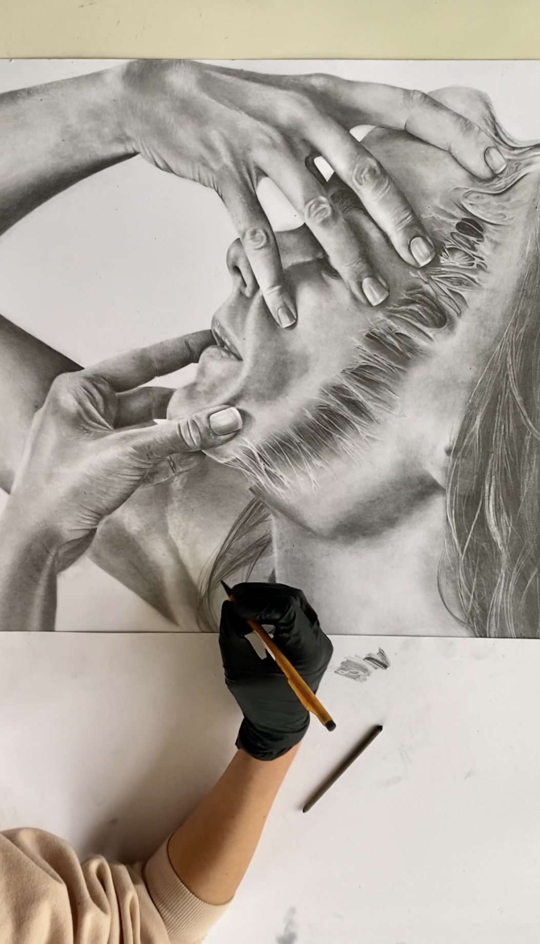in Arbeit, Graphit auf Papier, 59x84